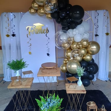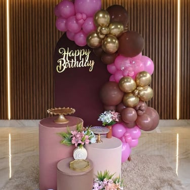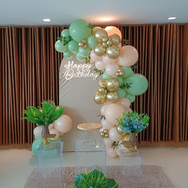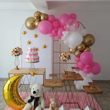 Cuidamos de cada detalhe para você: realizamos toda a montagem do mobiliário, criamos o arco de balões, fazemos a entrega e a retirada dos materiais e deixamos tudo impecável — pronto para sua festa brilhar e encantar seus convidados.